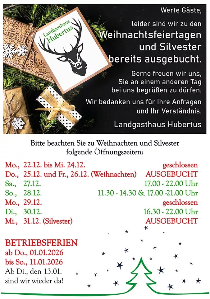 Telefonische Tischreservierung und Bestellung außer Haus erbitten wir unter (05676) 322